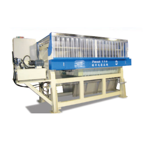 雙膜片式壓濾機(jī)采用PLC+人機(jī)熒幕界面,簡單方便,一目了然。采用高壓進(jìn)料 8~12kg/cm3,雙膜片二次逆壓12~16 kg/cm3,脫水效果好,成品含水率低,成品含水率約為30%~60%。采用濾布震動(dòng)落料系統(tǒng)和密閉式濾布反沖洗系統(tǒng),操作簡單;有630mmx630mm, 930mmx930mm等各種濾板尺寸,規(guī)格齊全;濾板材質(zhì)可按要求定制,可適用于各種不同產(chǎn)業(yè)。適用于工業(yè)污泥脫水,市政下水道污泥,河川整治污泥等。
